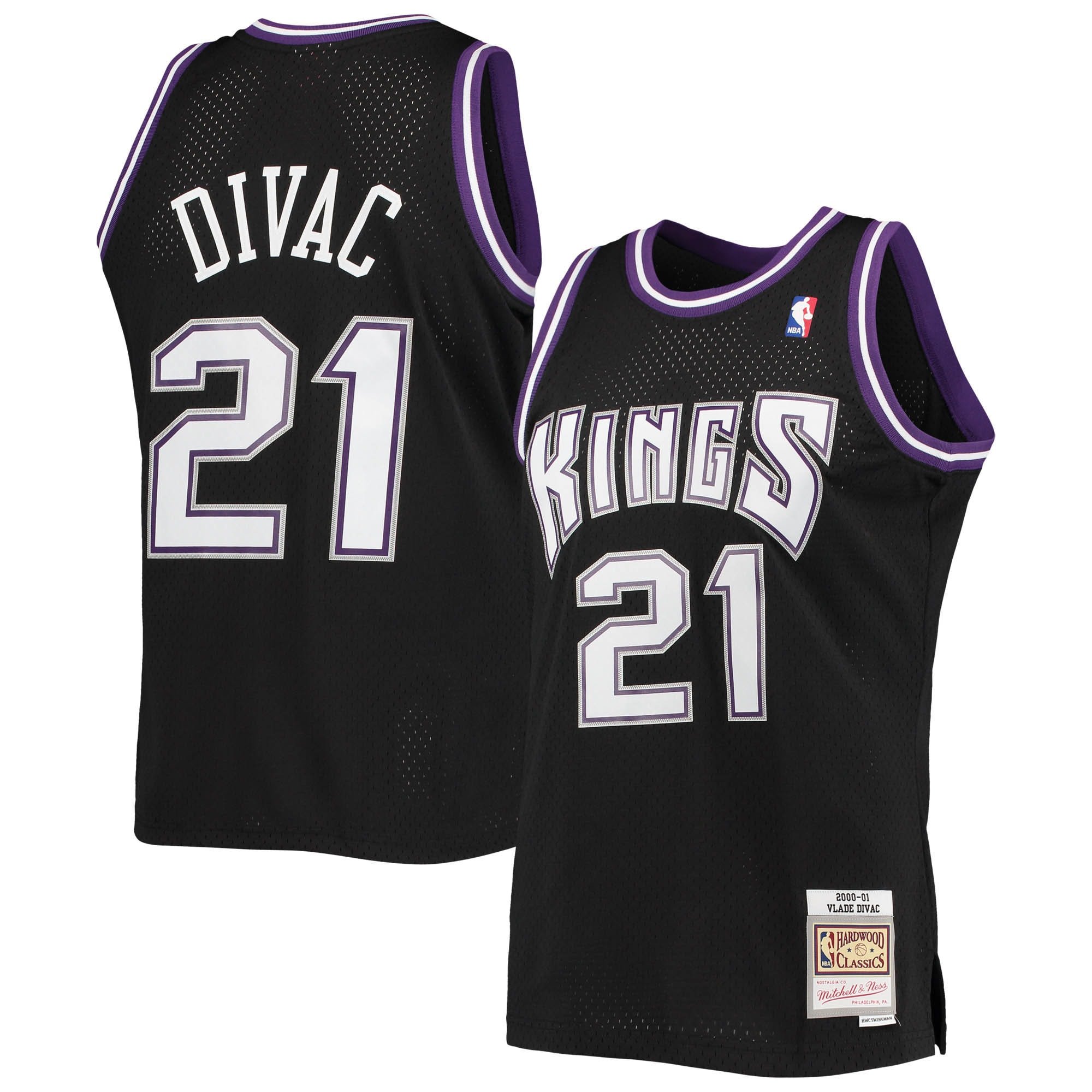 Men’s Sacramento Kings Mike Bibby Mitchell & Ness Purple/Black Hardwood Classics 2001/02 Split Swingman Jersey