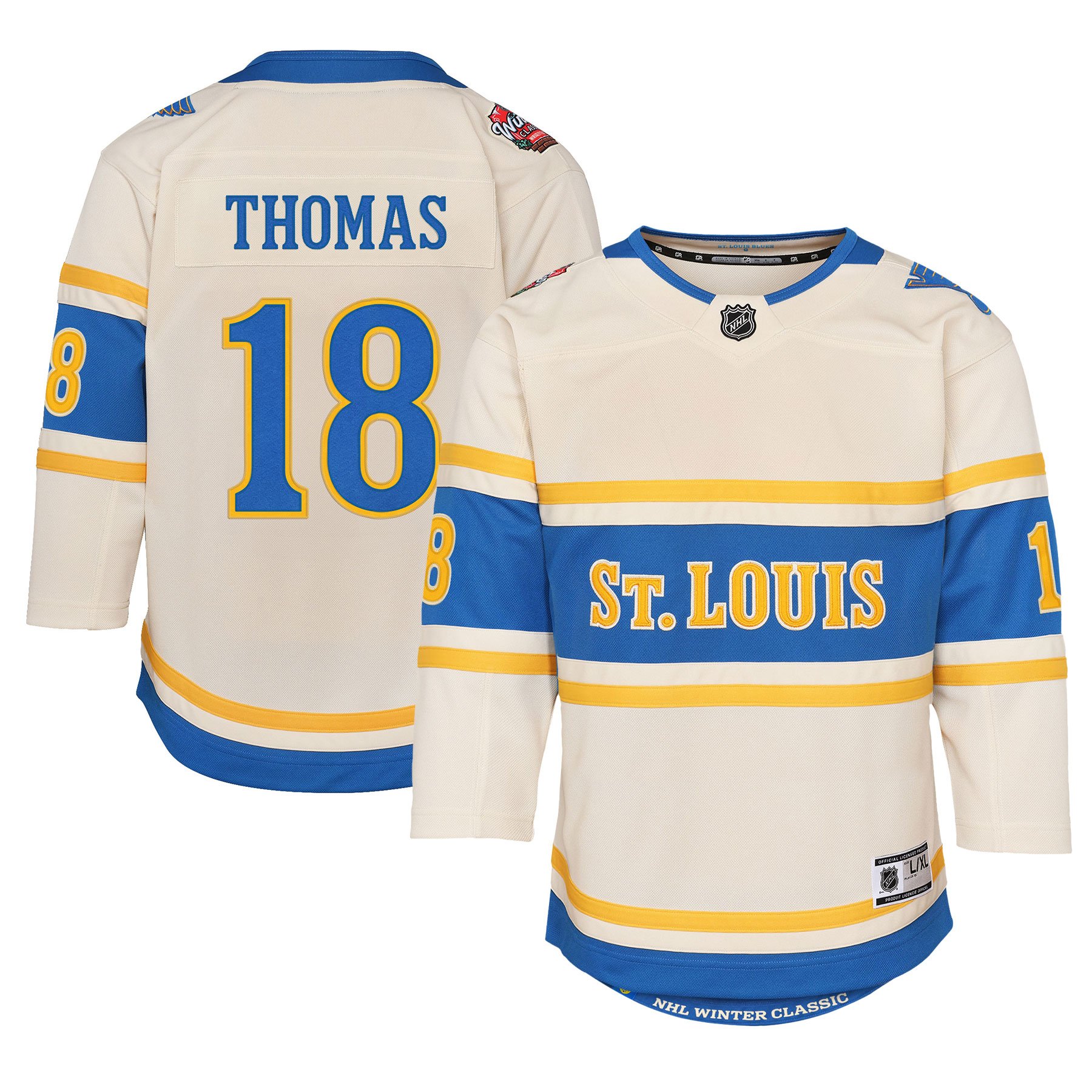 Jordan Binnington #50 St. Louis Blues Youth 2025 NHL Winter Classic Premier Player Cream Jersey